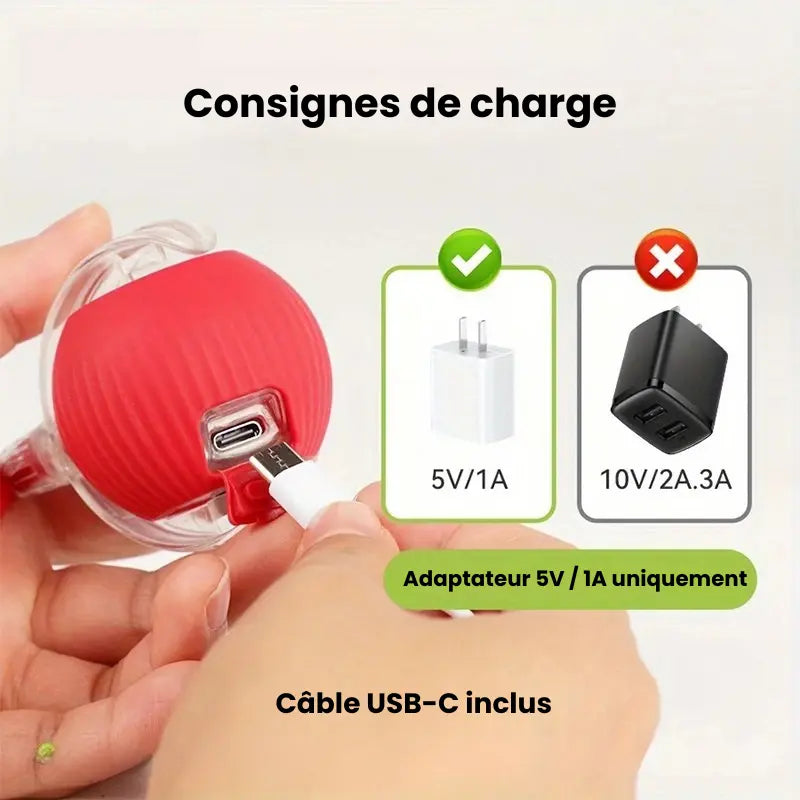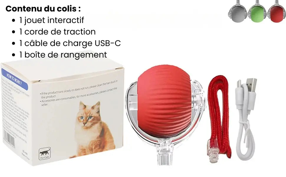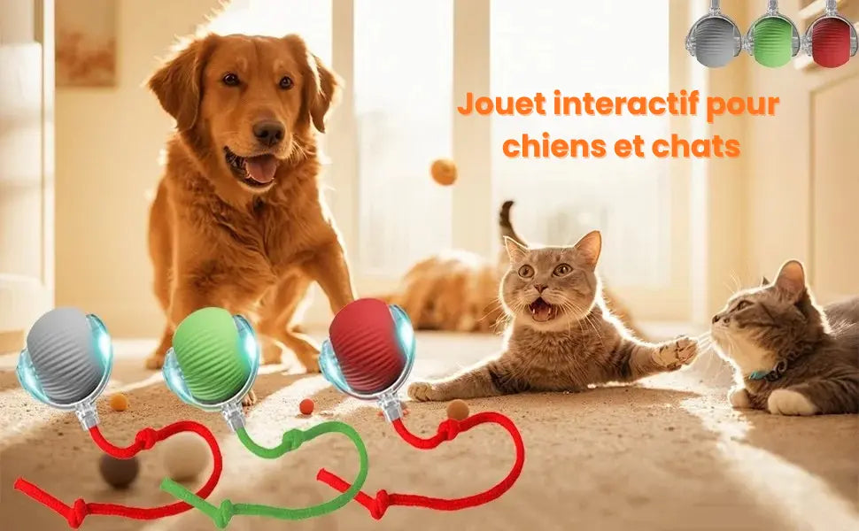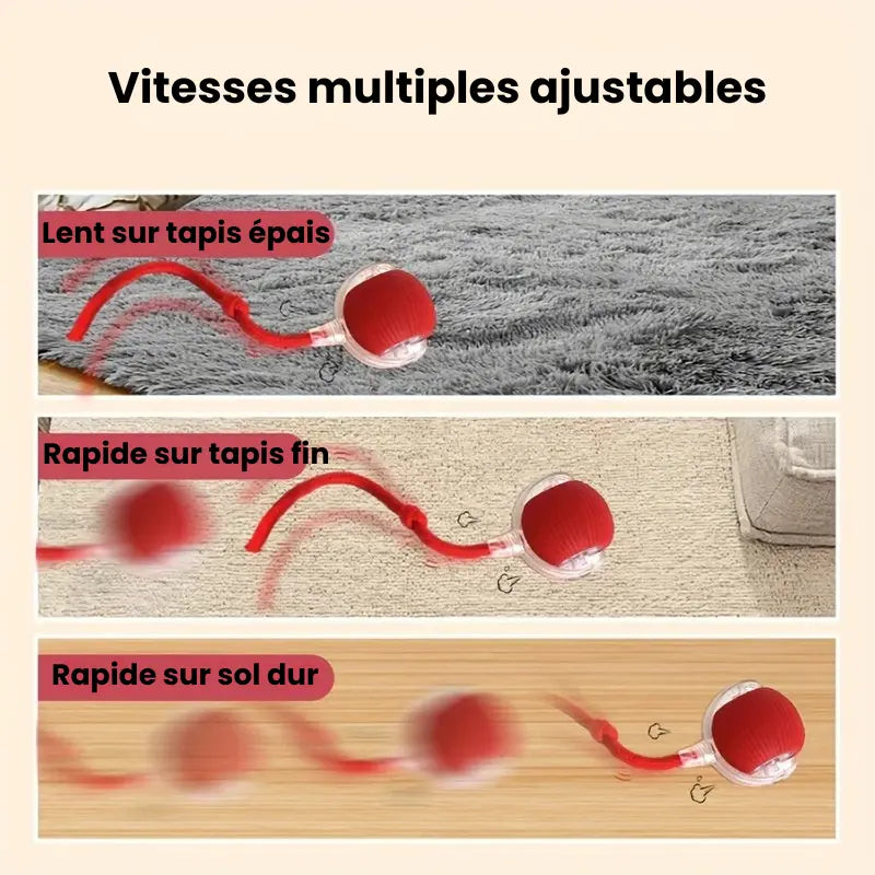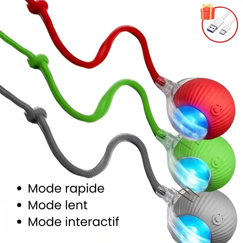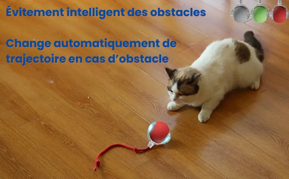Ses capteurs d’évitement d’obstacles permettent à la balle de changer automatiquement de direction lorsqu’elle rencontre un mur ou un meuble, assurant un jeu fluide sans blocage. La queue souple attachée ajoute une dimension de traction et de capture, idéale pour prolonger le jeu et encourager l’activité physique.