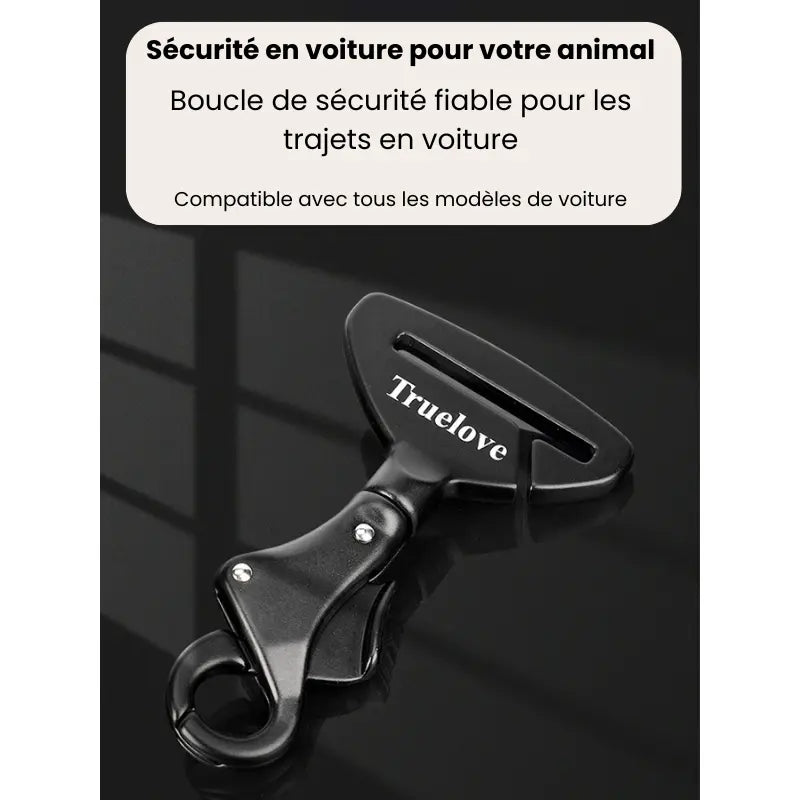 Elle permet d’attacher le harnais de votre chien à la ceinture de sécurité de votre voiture pour voyager en toute sécurité.