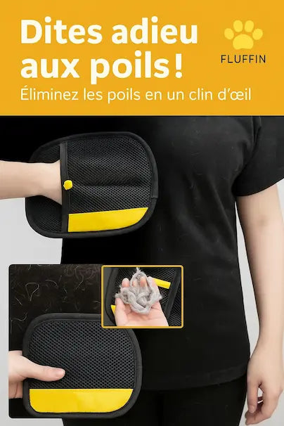 Il suffit d’enfiler le gant et de passer la main sur la surface à nettoyer (ou sur l’animal) en effectuant des mouvements simples dans un seul sens.Les poils s’accumulent naturellement en une bande compacte que vous pouvez retirer en une seule fois. Sans colle, sans pile, sans effort.
